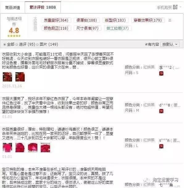賣得多,數量當然就自然會多,之前可以通過好評帶XX字返現來鼓勵買家評價,現在是不行了。現在盡可能的通過寶貝內頁描述,在符合淘寶天貓平臺規則的情況下,引導買家評價。評價的數量越多,買家就有越多的參考。爆款寶貝是不怕評價多的,因為爆款寶貝一般評價都是正面,評價越多,對轉化越有利。而那些不好的次品寶貝,則害怕評價多,因為這些寶貝一般負面評價很多,隨之評價的增多,缺點暴露無遺,后面的買家看了評價之后,基本都不會下單了。