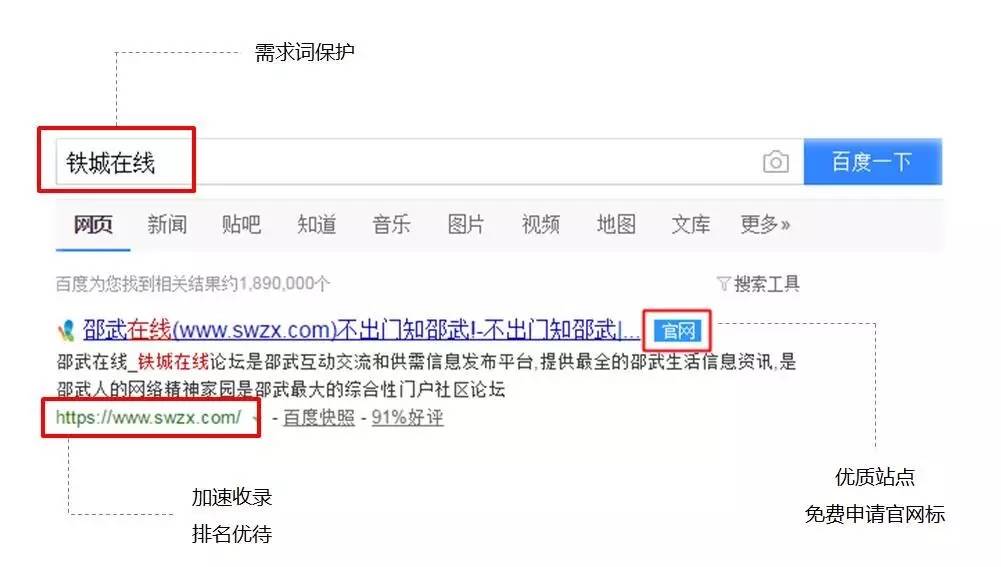2、未被百度收錄的官方網站;或已被收錄,但在明確尋址需求下展現位置靠后的官方網站